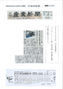 20250702_sangyou nano bubble 金網製品一覧 織金網 平織金網 平織金網網目一覧表 綾織金網 綾織金網網目一覧表 特殊線材メッシュ網目一覧 マグネステン®金網 マグネステン®金網網目一覧表 平畳織金網 綾畳織金網 クリンプ織金網 ロッククリンプ織金網 フラットトップ織金網(滑面式金網) トンキャップ織金網(長目金網) タイロッド織金網 振動篩用金網について JIS試験用ふるい ワイヤーネットコンベヤー 菱形金網 亀甲金網 装飾用織金網 ワイヤーゲージ(線番) 織金網加工品 パンチングメタル(打抜金網) 金型パターン 在庫リスト 造粒機及び粉砕機用 遠心分離機用 スーパーパンチング™SUPER PUNCHING™ スーパーパンチング™標準金型リスト スーパーパンチング™在庫リスト ODSサニタリーストレーナー™ 二相ステンレス鋼パンチングメタル™ 耐摩耗鋼板HARDOX® エンボス・ディンプル加工 樹脂パンチング™(プラスチックパンチング) セレクト カラー・サイズ樹脂パンチング™(PVC)オーダーシート CFRTP(炭素繊維強化熱可塑性樹脂)パンチング™ 大開孔率パンチング™(X-OPEN AREA PUNCHING) C.G.P/コンピューターグラフィックパンチング 開孔率自動計算(%) 重量自動計算(kg) パンチングメタル加工品 エキスパンドメタル・グレーチング エキスパンドメタル CFRTP EXメッシュ『CF TON』 グレーチング ワイヤーメッシュデミスター・充填物 ワイヤーメッシュデミスター 蒸留用填充物 デミスター加工品 溶接金網・ファインメッシュ 溶接金網 ファインメッシュ ファインメッシュ加工品 微細孔加工・放電加工 電子ビームドリル加工 EBD電子ビームドリル加工 参考データ 多軸同時・微細ドリリング・ルーター・ザグリ加工(金型レス) レーザースクリーン 再生プラスチック用 再生プラスチック用レーザーフィルター 造粒機用消耗部品 粉砕機用消耗部品 ウェッジワイヤースクリーン 業界・用途機能・製品検索 プラント 用途を選択 分離 滑り止め 摺動性 洗浄 保護 生産の効率化 補強 ふるい分け・選別 搬送 採光 整流・乱流 磁性 放熱・排熱 型付け 錆から守る 鉄鋼 用途を選択 分離 滑り止め 洗浄 保護 生産の効率化 補強 ふるい分け・選別 搬送 採光 磁性 受ける 錆から守る 鉱業 用途を選択 分離 滑り止め 摺動性 洗浄 保護 生産の効率化 補強 ふるい分け・選別 搬送 磁性 受ける 錆から守る 機械・造船 用途を選択 分離 滑り止め 摺動性 洗浄 保護 生産の効率化 ふるい分け・選別 搬送 整流・乱流 磁性 放熱・排熱 型付け 調理(揚げ・蒸し) 受ける 押出し成型 錆から守る 減少させる(音・光等) 自動車 用途を選択 分離 洗浄 保護 装飾 生産の効率化 搬送 整流・乱流 放熱・排熱 錆から守る 電機・電子部品 用途を選択 分離 摺動性 洗浄 保護 装飾 生産の効率化 ふるい分け・選別 搬送 放熱・排熱 型付け 錆から守る 航空宇宙 用途を選択 分離 洗浄 保護 生産の効率化 補強 整流・乱流 放熱・排熱 錆から守る 薬品 用途を選択 分離 摺動性 洗浄 保護 生産の効率化 ふるい分け・選別 搬送 整流・乱流 磁性 放熱・排熱 受ける 押出し成型 錆から守る 化学 用途を選択 分離 摺動性 洗浄 保護 生産の効率化 ふるい分け・選別 搬送 整流・乱流 磁性 放熱・排熱 受ける 押出し成型 錆から守る 食品 用途を選択 分離 滑り止め 摺動性 洗浄 保護 生産の効率化 ふるい分け・選別 搬送 整流・乱流 磁性 放熱・排熱 型付け 調理(揚げ・蒸し) 受ける 押出し成型 錆から守る 飲料 用途を選択 分離 滑り止め 摺動性 洗浄 保護 生産の効率化 ふるい分け・選別 搬送 整流・乱流 磁性 放熱・排熱 受ける 錆から守る 農業 用途を選択 分離 摺動性 洗浄 保護 生産の効率化 ふるい分け・選別 搬送 採光 受ける 錆から守る 環境 用途を選択 分離 滑り止め 摺動性 洗浄 保護 生産の効率化 ふるい分け・選別 搬送 磁性 受ける 錆から守る エネルギー 用途を選択 分離 摺動性 洗浄 保護 生産の効率化 補強 ふるい分け・選別 搬送 整流・乱流 放熱・排熱 錆から守る 水処理 用途を選択 分離 滑り止め 摺動性 洗浄 保護 生産の効率化 ふるい分け・選別 整流・乱流 磁性 受ける 錆から守る リサイクル 用途を選択 分離 滑り止め 摺動性 洗浄 保護 生産の効率化 ふるい分け・選別 搬送 整流・乱流 磁性 受ける 押出し成型 錆から守る 建築・土木 用途を選択 分離 滑り止め 摺動性 保護 装飾 生産の効率化 補強 ふるい分け・選別 搬送 採光 放熱・排熱 受ける 錆から守る 減少させる(音・光等) 電子カタログ 注文見積り お問い合わせ 採用情報 会社概要 Home > お知らせ > 社内イベント > 2025年7月2日付 日刊産業新聞に「インターフェックス展 奥谷金網、洗浄機を披露」の記事が掲載されました! > 20250702_sangyou nano bubble
