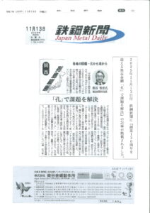20251113_tekkou rettou oudan 金網製品一覧 織金網 平織金網 平織金網網目一覧表 綾織金網 綾織金網網目一覧表 特殊線材メッシュ網目一覧 マグネステン®金網 マグネステン®金網網目一覧表 平畳織金網 綾畳織金網 クリンプ織金網 ロッククリンプ織金網 フラットトップ織金網(滑面式金網) トンキャップ織金網(長目金網) タイロッド織金網 振動篩用金網について JIS試験用ふるい ワイヤーネットコンベヤー 菱形金網 亀甲金網 装飾用織金網 ワイヤーゲージ(線番) 織金網加工品 パンチングメタル(打抜金網) 金型パターン 在庫リスト 造粒機及び粉砕機用 遠心分離機用 スーパーパンチング™SUPER PUNCHING™ スーパーパンチング™標準金型リスト スーパーパンチング™在庫リスト ODSサニタリーストレーナー™ 二相ステンレス鋼パンチングメタル™ 耐摩耗鋼板HARDOX® エンボス・ディンプル加工 樹脂パンチング™(プラスチックパンチング) セレクト カラー・サイズ樹脂パンチング™(PVC)オーダーシート CFRTP(炭素繊維強化熱可塑性樹脂)パンチング™ 大開孔率パンチング™(X-OPEN AREA PUNCHING) C.G.P/コンピューターグラフィックパンチング 開孔率自動計算(%) 重量自動計算(kg) パンチングメタル加工品 エキスパンドメタル・グレーチング エキスパンドメタル CFRTP EXメッシュ『CF TON』 グレーチング ワイヤーメッシュデミスター・充填物 ワイヤーメッシュデミスター 蒸留用填充物 デミスター加工品 溶接金網・ファインメッシュ 溶接金網 ファインメッシュ ファインメッシュ加工品 微細孔加工・放電加工 電子ビームドリル加工 EBD電子ビームドリル加工 参考データ 多軸同時・微細ドリリング・ルーター・ザグリ加工(金型レス) レーザースクリーン 再生プラスチック用 再生プラスチック用レーザーフィルター 造粒機用消耗部品 粉砕機用消耗部品 ウェッジワイヤースクリーン 業界・用途機能・製品検索 プラント 用途を選択 分離 滑り止め 摺動性 洗浄 保護 生産の効率化 補強 ふるい分け・選別 搬送 採光 整流・乱流 磁性 放熱・排熱 型付け 錆から守る 鉄鋼 用途を選択 分離 滑り止め 洗浄 保護 生産の効率化 補強 ふるい分け・選別 搬送 採光 磁性 受ける 錆から守る 鉱業 用途を選択 分離 滑り止め 摺動性 洗浄 保護 生産の効率化 補強 ふるい分け・選別 搬送 磁性 受ける 錆から守る 機械・造船 用途を選択 分離 滑り止め 摺動性 洗浄 保護 生産の効率化 ふるい分け・選別 搬送 整流・乱流 磁性 放熱・排熱 型付け 調理(揚げ・蒸し) 受ける 押出し成型 錆から守る 減少させる(音・光等) 自動車 用途を選択 分離 洗浄 保護 装飾 生産の効率化 搬送 整流・乱流 放熱・排熱 錆から守る 電機・電子部品 用途を選択 分離 摺動性 洗浄 保護 装飾 生産の効率化 ふるい分け・選別 搬送 放熱・排熱 型付け 錆から守る 航空宇宙 用途を選択 分離 洗浄 保護 生産の効率化 補強 整流・乱流 放熱・排熱 錆から守る 薬品 用途を選択 分離 摺動性 洗浄 保護 生産の効率化 ふるい分け・選別 搬送 整流・乱流 磁性 放熱・排熱 受ける 押出し成型 錆から守る 化学 用途を選択 分離 摺動性 洗浄 保護 生産の効率化 ふるい分け・選別 搬送 整流・乱流 磁性 放熱・排熱 受ける 押出し成型 錆から守る 食品 用途を選択 分離 滑り止め 摺動性 洗浄 保護 生産の効率化 ふるい分け・選別 搬送 整流・乱流 磁性 放熱・排熱 型付け 調理(揚げ・蒸し) 受ける 押出し成型 錆から守る 飲料 用途を選択 分離 滑り止め 摺動性 洗浄 保護 生産の効率化 ふるい分け・選別 搬送 整流・乱流 磁性 放熱・排熱 受ける 錆から守る 農業 用途を選択 分離 摺動性 洗浄 保護 生産の効率化 ふるい分け・選別 搬送 採光 受ける 錆から守る 環境 用途を選択 分離 滑り止め 摺動性 洗浄 保護 生産の効率化 ふるい分け・選別 搬送 磁性 受ける 錆から守る エネルギー 用途を選択 分離 摺動性 洗浄 保護 生産の効率化 補強 ふるい分け・選別 搬送 整流・乱流 放熱・排熱 錆から守る 水処理 用途を選択 分離 滑り止め 摺動性 洗浄 保護 生産の効率化 ふるい分け・選別 整流・乱流 磁性 受ける 錆から守る リサイクル 用途を選択 分離 滑り止め 摺動性 洗浄 保護 生産の効率化 ふるい分け・選別 搬送 整流・乱流 磁性 受ける 押出し成型 錆から守る 建築・土木 用途を選択 分離 滑り止め 摺動性 保護 装飾 生産の効率化 補強 ふるい分け・選別 搬送 採光 放熱・排熱 受ける 錆から守る 減少させる(音・光等) 電子カタログ 注文見積り お問い合わせ 採用情報 会社概要 Home > お知らせ > マスコミ掲載 > 2025年11月13日付 鉄鋼新聞に『創業130周年を迎える奥谷金網「孔」で課題を解決』の記事が掲載されました。 > 20251113_tekkou rettou oudan