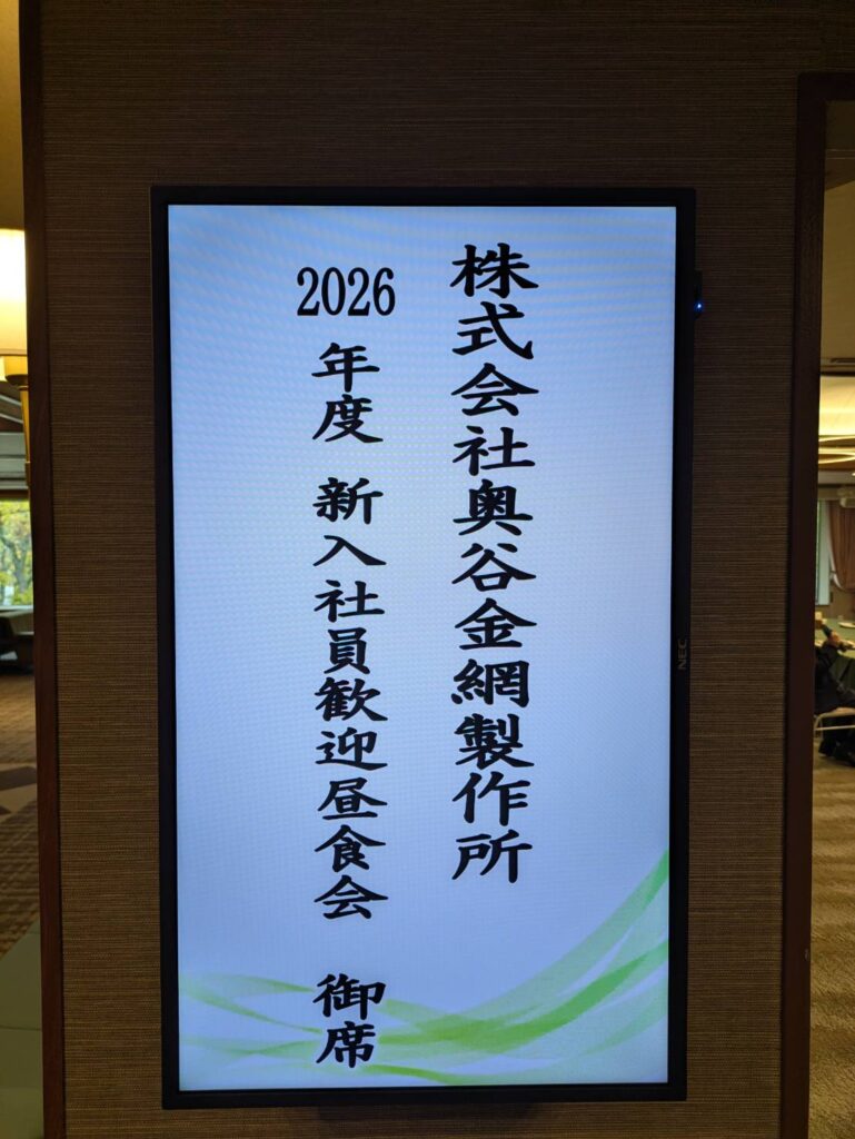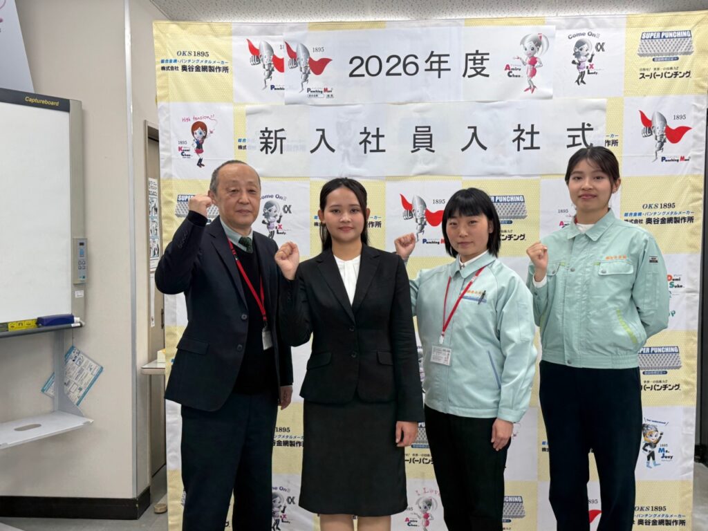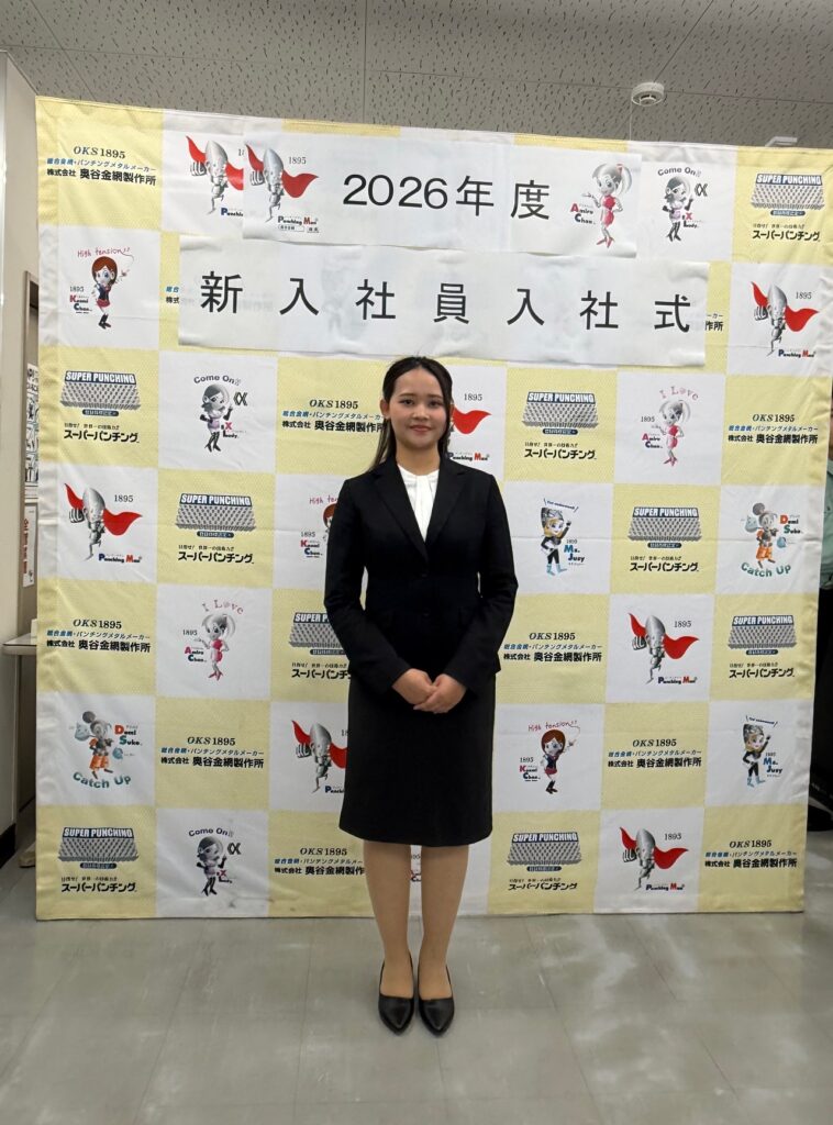 社内イベント 金網製品一覧 織金網 平織金網 平織金網網目一覧表 綾織金網 綾織金網網目一覧表 特殊線材メッシュ網目一覧 マグネステン®金網 マグネステン®金網網目一覧表 平畳織金網 綾畳織金網 クリンプ織金網 ロッククリンプ織金網 フラットトップ織金網(滑面式金網) トンキャップ織金網(長目金網) タイロッド織金網 振動篩用金網について JIS試験用ふるい ワイヤーネットコンベヤー 菱形金網 亀甲金網 装飾用織金網 ワイヤーゲージ(線番) 織金網加工品 パンチングメタル(打抜金網) 金型パターン 在庫リスト 造粒機及び粉砕機用 遠心分離機用 スーパーパンチング™SUPER PUNCHING™ スーパーパンチング™標準金型リスト スーパーパンチング™在庫リスト ODSサニタリーストレーナー™ 二相ステンレス鋼パンチングメタル™ 耐摩耗鋼板HARDOX® エンボス・ディンプル加工 樹脂パンチング™(プラスチックパンチング) セレクト カラー・サイズ樹脂パンチング™(PVC)オーダーシート CFRTP(炭素繊維強化熱可塑性樹脂)パンチング™ 大開孔率パンチング™(X-OPEN AREA PUNCHING) C.G.P/コンピューターグラフィックパンチング 開孔率自動計算(%) 重量自動計算(kg) パンチングメタル加工品 エキスパンドメタル・グレーチング エキスパンドメタル CFRTP EXメッシュ『CF TON』 グレーチング ワイヤーメッシュデミスター・充填物 ワイヤーメッシュデミスター 蒸留用填充物 デミスター加工品 溶接金網・ファインメッシュ 溶接金網 ファインメッシュ ファインメッシュ加工品 微細孔加工・放電加工 電子ビームドリル加工 EBD電子ビームドリル加工 参考データ 多軸同時・微細ドリリング・ルーター・ザグリ加工(金型レス) レーザースクリーン 再生プラスチック用 再生プラスチック用レーザーフィルター 造粒機用消耗部品 粉砕機用消耗部品 ウェッジワイヤースクリーン 業界・用途機能・製品検索 プラント 用途を選択 分離 滑り止め 摺動性 洗浄 保護 生産の効率化 補強 ふるい分け・選別 搬送 採光 整流・乱流 磁性 放熱・排熱 型付け 錆から守る 鉄鋼 用途を選択 分離 滑り止め 洗浄 保護 生産の効率化 補強 ふるい分け・選別 搬送 採光 磁性 受ける 錆から守る 鉱業 用途を選択 分離 滑り止め 摺動性 洗浄 保護 生産の効率化 補強 ふるい分け・選別 搬送 磁性 受ける 錆から守る 機械・造船 用途を選択 分離 滑り止め 摺動性 洗浄 保護 生産の効率化 ふるい分け・選別 搬送 整流・乱流 磁性 放熱・排熱 型付け 調理(揚げ・蒸し) 受ける 押出し成型 錆から守る 減少させる(音・光等) 自動車 用途を選択 分離 洗浄 保護 装飾 生産の効率化 搬送 整流・乱流 放熱・排熱 錆から守る 電機・電子部品 用途を選択 分離 摺動性 洗浄 保護 装飾 生産の効率化 ふるい分け・選別 搬送 放熱・排熱 型付け 錆から守る 航空宇宙 用途を選択 分離 洗浄 保護 生産の効率化 補強 整流・乱流 放熱・排熱 錆から守る 薬品 用途を選択 分離 摺動性 洗浄 保護 生産の効率化 ふるい分け・選別 搬送 整流・乱流 磁性 放熱・排熱 受ける 押出し成型 錆から守る 化学 用途を選択 分離 摺動性 洗浄 保護 生産の効率化 ふるい分け・選別 搬送 整流・乱流 磁性 放熱・排熱 受ける 押出し成型 錆から守る 食品 用途を選択 分離 滑り止め 摺動性 洗浄 保護 生産の効率化 ふるい分け・選別 搬送 整流・乱流 磁性 放熱・排熱 型付け 調理(揚げ・蒸し) 受ける 押出し成型 錆から守る 飲料 用途を選択 分離 滑り止め 摺動性 洗浄 保護 生産の効率化 ふるい分け・選別 搬送 整流・乱流 磁性 放熱・排熱 受ける 錆から守る 農業 用途を選択 分離 摺動性 洗浄 保護 生産の効率化 ふるい分け・選別 搬送 採光 受ける 錆から守る 環境 用途を選択 分離 滑り止め 摺動性 洗浄 保護 生産の効率化 ふるい分け・選別 搬送 磁性 受ける 錆から守る エネルギー 用途を選択 分離 摺動性 洗浄 保護 生産の効率化 補強 ふるい分け・選別 搬送 整流・乱流 放熱・排熱 錆から守る 水処理 用途を選択 分離 滑り止め 摺動性 洗浄 保護 生産の効率化 ふるい分け・選別 整流・乱流 磁性 受ける 錆から守る リサイクル 用途を選択 分離 滑り止め 摺動性 洗浄 保護 生産の効率化 ふるい分け・選別 搬送 整流・乱流 磁性 受ける 押出し成型 錆から守る 建築・土木 用途を選択 分離 滑り止め 摺動性 保護 装飾 生産の効率化 補強 ふるい分け・選別 搬送 採光 放熱・排熱 受ける 錆から守る 減少させる(音・光等) 電子カタログ 注文見積り お問い合わせ 採用情報 会社概要 Home > お知らせ > 社内イベント > 2026年4月1日(水)『2026年度 新入社員入社式』を神戸本社にて執り行いました。 2026年4月1日(水)『2026年度 新入社員入社式』を神戸本社にて執り行いました。 公開日:2026.04.07 2026年4月1日(水)『2026年度 新入社員入社式』を神戸本社にて執り行いました。 今年度の新卒入社は1名です。 最新の記事 2026年3月31日(火) 堺工場にて第35回 2026年4月1日(水)『2026年度 新入社 2026年2月14日(土)グランフロント大阪に 2025年1月16日(金)に神戸サンボーホール 2026年1月17日