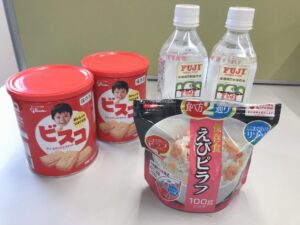 お昼に防災備品で保管していた保存食の試食会をしました!