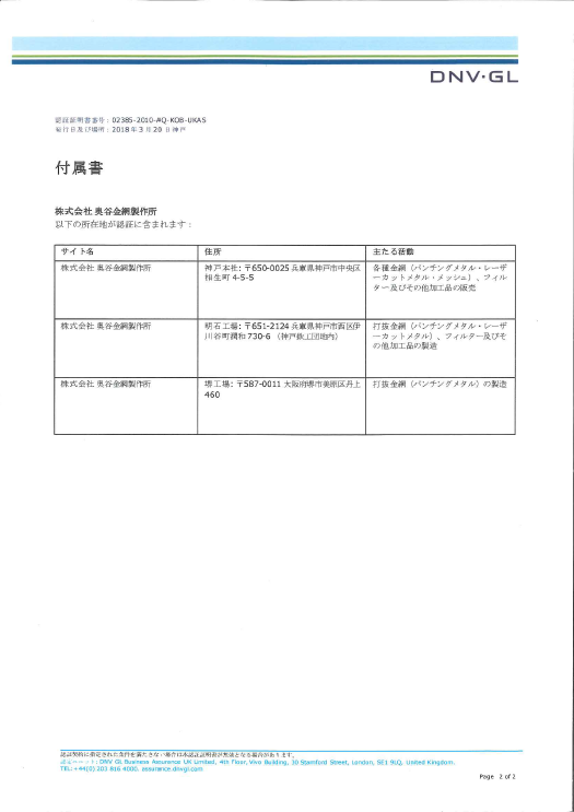 iso2018-2 金網製品一覧 織金網 平織金網 平織金網網目一覧表 綾織金網 綾織金網網目一覧表 特殊線材メッシュ網目一覧 マグネステン®金網 マグネステン®金網網目一覧表 平畳織金網 綾畳織金網 クリンプ織金網 ロッククリンプ織金網 フラットトップ織金網(滑面式金網) トンキャップ織金網(長目金網) タイロッド織金網 振動篩用金網について JIS試験用ふるい ワイヤーネットコンベヤー 菱形金網 亀甲金網 装飾用織金網 ワイヤーゲージ(線番) 織金網加工品 パンチングメタル(打抜金網) 金型パターン 在庫リスト 造粒機及び粉砕機用 遠心分離機用 スーパーパンチング™SUPER PUNCHING™ スーパーパンチング™標準金型リスト スーパーパンチング™在庫リスト ODSサニタリーストレーナー™ 二相ステンレス鋼パンチングメタル™ 耐摩耗鋼板HARDOX® エンボス・ディンプル加工 樹脂パンチング™(プラスチックパンチング) セレクト カラー・サイズ樹脂パンチング™(PVC)オーダーシート CFRTP(炭素繊維強化熱可塑性樹脂)パンチング™ 大開孔率パンチング™(X-OPEN AREA PUNCHING) C.G.P/コンピューターグラフィックパンチング 開孔率自動計算(%) 重量自動計算(kg) パンチングメタル加工品 エキスパンドメタル・グレーチング エキスパンドメタル CFRTP EXメッシュ『CF TON』 グレーチング ワイヤーメッシュデミスター・充填物 ワイヤーメッシュデミスター 蒸留用填充物 デミスター加工品 溶接金網・ファインメッシュ 溶接金網 ファインメッシュ ファインメッシュ加工品 微細孔加工・放電加工 電子ビームドリル加工 EBD電子ビームドリル加工 参考データ 多軸同時・微細ドリリング・ルーター・ザグリ加工(金型レス) レーザースクリーン 再生プラスチック用 再生プラスチック用レーザーフィルター 造粒機用消耗部品 粉砕機用消耗部品 ウェッジワイヤースクリーン 業界・用途機能・製品検索 プラント 用途を選択 分離 滑り止め 摺動性 洗浄 保護 生産の効率化 補強 ふるい分け・選別 搬送 採光 整流・乱流 磁性 放熱・排熱 型付け 錆から守る 鉄鋼 用途を選択 分離 滑り止め 洗浄 保護 生産の効率化 補強 ふるい分け・選別 搬送 採光 磁性 受ける 錆から守る 鉱業 用途を選択 分離 滑り止め 摺動性 洗浄 保護 生産の効率化 補強 ふるい分け・選別 搬送 磁性 受ける 錆から守る 機械・造船 用途を選択 分離 滑り止め 摺動性 洗浄 保護 生産の効率化 ふるい分け・選別 搬送 整流・乱流 磁性 放熱・排熱 型付け 調理(揚げ・蒸し) 受ける 押出し成型 錆から守る 減少させる(音・光等) 自動車 用途を選択 分離 洗浄 保護 装飾 生産の効率化 搬送 整流・乱流 放熱・排熱 錆から守る 電機・電子部品 用途を選択 分離 摺動性 洗浄 保護 装飾 生産の効率化 ふるい分け・選別 搬送 放熱・排熱 型付け 錆から守る 航空宇宙 用途を選択 分離 洗浄 保護 生産の効率化 補強 整流・乱流 放熱・排熱 錆から守る 薬品 用途を選択 分離 摺動性 洗浄 保護 生産の効率化 ふるい分け・選別 搬送 整流・乱流 磁性 放熱・排熱 受ける 押出し成型 錆から守る 化学 用途を選択 分離 摺動性 洗浄 保護 生産の効率化 ふるい分け・選別 搬送 整流・乱流 磁性 放熱・排熱 受ける 押出し成型 錆から守る 食品 用途を選択 分離 滑り止め 摺動性 洗浄 保護 生産の効率化 ふるい分け・選別 搬送 整流・乱流 磁性 放熱・排熱 型付け 調理(揚げ・蒸し) 受ける 押出し成型 錆から守る 飲料 用途を選択 分離 滑り止め 摺動性 洗浄 保護 生産の効率化 ふるい分け・選別 搬送 整流・乱流 磁性 放熱・排熱 受ける 錆から守る 農業 用途を選択 分離 摺動性 洗浄 保護 生産の効率化 ふるい分け・選別 搬送 採光 受ける 錆から守る 環境 用途を選択 分離 滑り止め 摺動性 洗浄 保護 生産の効率化 ふるい分け・選別 搬送 磁性 受ける 錆から守る エネルギー 用途を選択 分離 摺動性 洗浄 保護 生産の効率化 補強 ふるい分け・選別 搬送 整流・乱流 放熱・排熱 錆から守る 水処理 用途を選択 分離 滑り止め 摺動性 洗浄 保護 生産の効率化 ふるい分け・選別 整流・乱流 磁性 受ける 錆から守る リサイクル 用途を選択 分離 滑り止め 摺動性 洗浄 保護 生産の効率化 ふるい分け・選別 搬送 整流・乱流 磁性 受ける 押出し成型 錆から守る 建築・土木 用途を選択 分離 滑り止め 摺動性 保護 装飾 生産の効率化 補強 ふるい分け・選別 搬送 採光 放熱・排熱 受ける 錆から守る 減少させる(音・光等) 電子カタログ 注文見積り お問い合わせ 採用情報 会社概要 Home > お知らせ > 2016年3月7日(火)ISO9001認証取得(更新)しました。(神戸本社・明石工場・堺工場) > iso2018-2