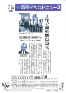 180710 金網製品一覧 織金網 平織金網 平織金網網目一覧表 綾織金網 綾織金網網目一覧表 特殊線材メッシュ網目一覧 マグネステン®金網 マグネステン®金網網目一覧表 平畳織金網 綾畳織金網 クリンプ織金網 ロッククリンプ織金網 フラットトップ織金網(滑面式金網) トンキャップ織金網(長目金網) タイロッド織金網 振動篩用金網について JIS試験用ふるい ワイヤーネットコンベヤー 菱形金網 亀甲金網 装飾用織金網 ワイヤーゲージ(線番) 織金網加工品 パンチングメタル(打抜金網) 金型パターン 在庫リスト 造粒機及び粉砕機用 遠心分離機用 スーパーパンチング™SUPER PUNCHING™ スーパーパンチング™標準金型リスト スーパーパンチング™在庫リスト ODSサニタリーストレーナー™ 二相ステンレス鋼パンチングメタル™ 耐摩耗鋼板HARDOX® エンボス・ディンプル加工 樹脂パンチング™(プラスチックパンチング) セレクト カラー・サイズ樹脂パンチング™(PVC)オーダーシート CFRTP(炭素繊維強化熱可塑性樹脂)パンチング™ 大開孔率パンチング™(X-OPEN AREA PUNCHING) C.G.P/コンピューターグラフィックパンチング 開孔率自動計算(%) 重量自動計算(kg) パンチングメタル加工品 エキスパンドメタル・グレーチング エキスパンドメタル CFRTP EXメッシュ『CF TON』 グレーチング ワイヤーメッシュデミスター・充填物 ワイヤーメッシュデミスター 蒸留用填充物 デミスター加工品 溶接金網・ファインメッシュ 溶接金網 ファインメッシュ ファインメッシュ加工品 微細孔加工・放電加工 電子ビームドリル加工 EBD電子ビームドリル加工 参考データ 多軸同時・微細ドリリング・ルーター・ザグリ加工(金型レス) レーザースクリーン 再生プラスチック用 再生プラスチック用レーザーフィルター 造粒機用消耗部品 粉砕機用消耗部品 ウェッジワイヤースクリーン 業界・用途機能・製品検索 プラント 用途を選択 分離 滑り止め 摺動性 洗浄 保護 生産の効率化 補強 ふるい分け・選別 搬送 採光 整流・乱流 磁性 放熱・排熱 型付け 錆から守る 鉄鋼 用途を選択 分離 滑り止め 洗浄 保護 生産の効率化 補強 ふるい分け・選別 搬送 採光 磁性 受ける 錆から守る 鉱業 用途を選択 分離 滑り止め 摺動性 洗浄 保護 生産の効率化 補強 ふるい分け・選別 搬送 磁性 受ける 錆から守る 機械・造船 用途を選択 分離 滑り止め 摺動性 洗浄 保護 生産の効率化 ふるい分け・選別 搬送 整流・乱流 磁性 放熱・排熱 型付け 調理(揚げ・蒸し) 受ける 押出し成型 錆から守る 減少させる(音・光等) 自動車 用途を選択 分離 洗浄 保護 装飾 生産の効率化 搬送 整流・乱流 放熱・排熱 錆から守る 電機・電子部品 用途を選択 分離 摺動性 洗浄 保護 装飾 生産の効率化 ふるい分け・選別 搬送 放熱・排熱 型付け 錆から守る 航空宇宙 用途を選択 分離 洗浄 保護 生産の効率化 補強 整流・乱流 放熱・排熱 錆から守る 薬品 用途を選択 分離 摺動性 洗浄 保護 生産の効率化 ふるい分け・選別 搬送 整流・乱流 磁性 放熱・排熱 受ける 押出し成型 錆から守る 化学 用途を選択 分離 摺動性 洗浄 保護 生産の効率化 ふるい分け・選別 搬送 整流・乱流 磁性 放熱・排熱 受ける 押出し成型 錆から守る 食品 用途を選択 分離 滑り止め 摺動性 洗浄 保護 生産の効率化 ふるい分け・選別 搬送 整流・乱流 磁性 放熱・排熱 型付け 調理(揚げ・蒸し) 受ける 押出し成型 錆から守る 飲料 用途を選択 分離 滑り止め 摺動性 洗浄 保護 生産の効率化 ふるい分け・選別 搬送 整流・乱流 磁性 放熱・排熱 受ける 錆から守る 農業 用途を選択 分離 摺動性 洗浄 保護 生産の効率化 ふるい分け・選別 搬送 採光 受ける 錆から守る 環境 用途を選択 分離 滑り止め 摺動性 洗浄 保護 生産の効率化 ふるい分け・選別 搬送 磁性 受ける 錆から守る エネルギー 用途を選択 分離 摺動性 洗浄 保護 生産の効率化 補強 ふるい分け・選別 搬送 整流・乱流 放熱・排熱 錆から守る 水処理 用途を選択 分離 滑り止め 摺動性 洗浄 保護 生産の効率化 ふるい分け・選別 整流・乱流 磁性 受ける 錆から守る リサイクル 用途を選択 分離 滑り止め 摺動性 洗浄 保護 生産の効率化 ふるい分け・選別 搬送 整流・乱流 磁性 受ける 押出し成型 錆から守る 建築・土木 用途を選択 分離 滑り止め 摺動性 保護 装飾 生産の効率化 補強 ふるい分け・選別 搬送 採光 放熱・排熱 受ける 錆から守る 減少させる(音・光等) 電子カタログ 注文見積り お問い合わせ 採用情報 会社概要 Home > お知らせ > マスコミ掲載 > 2018年7月10日付『1年で海外拠点設立』の記事が『国際イベントニュース』に掲載されました。 > 180710
